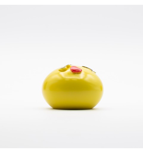 Smile sfera piatta con occhietto, bacio e cuoricino creata con polvere di marmo di colore giallo.