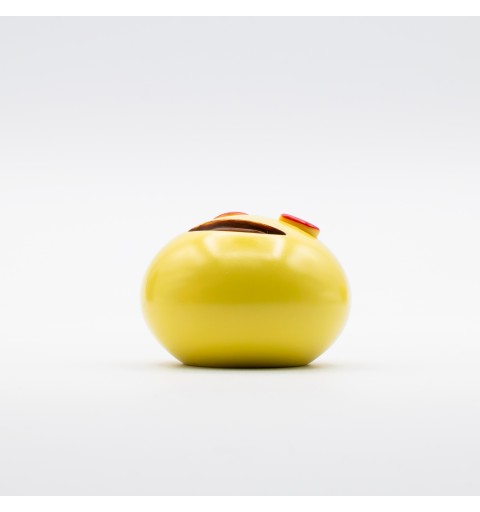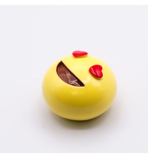 Smile sfera piatta con occhi a cuore, creata con polvere di marmo di colore giallo.
